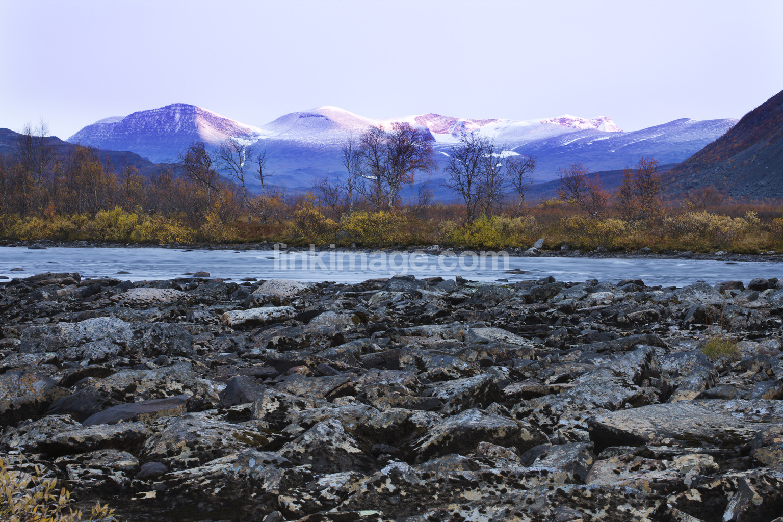 river, stream, water, fall, dusk, forest, tree, mountain, rock, stone, bush, view, views, snow, top