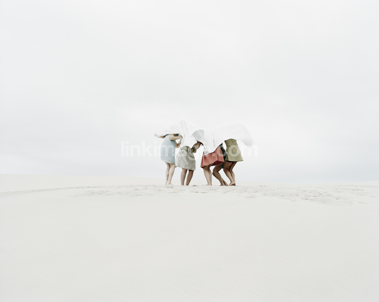 - skirt, female, girl, group, desert, sand, cushion sand, pad, hill