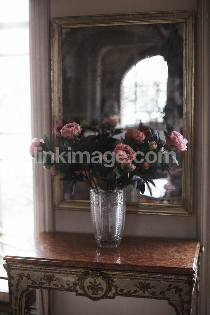 - vase, flower, flowers, mirror, still life, rose, bouquet, table, marble