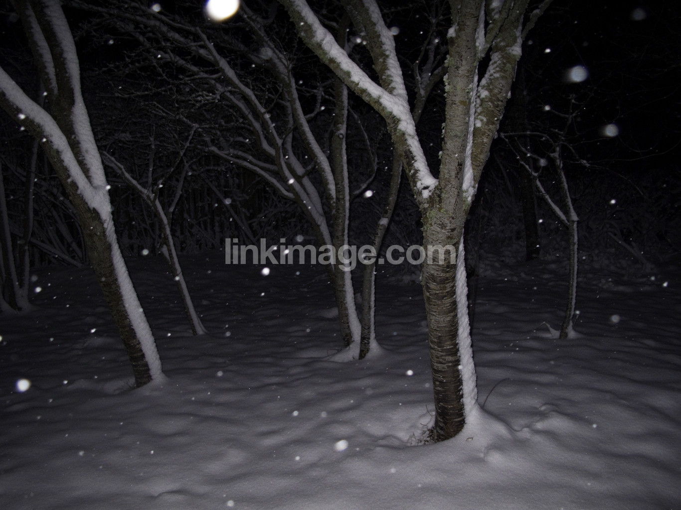 snow, snowing, snowfall, night, dark, cold, winter, tree, garden, branches, weather
