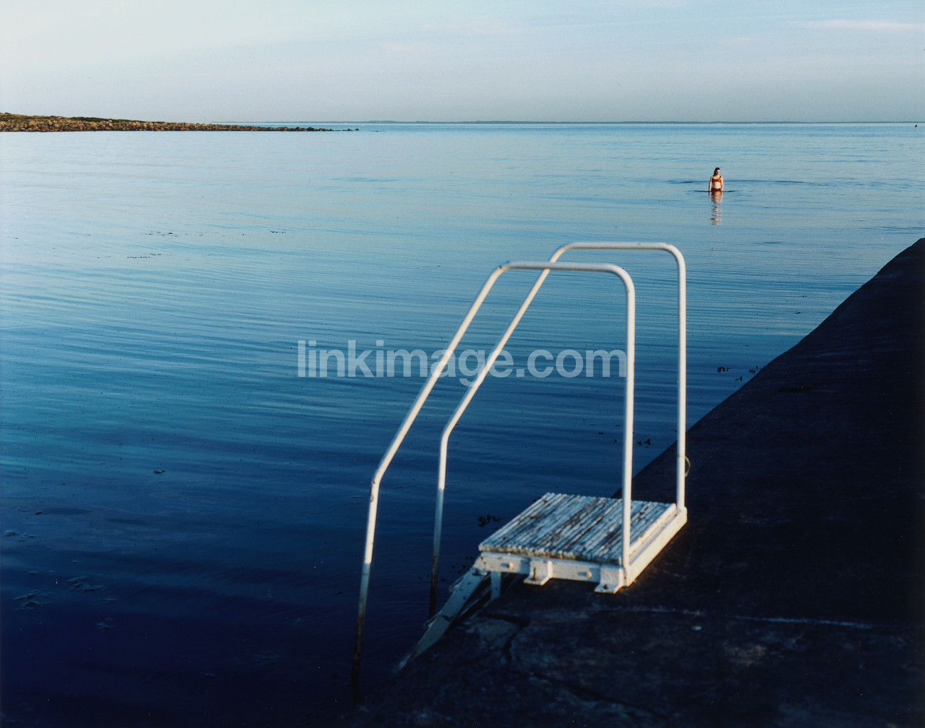 ladder, blue, girl, bikini, lake, sea, water, swim, wade, swimming, holiday, relaxation, horizon, sky, bk436