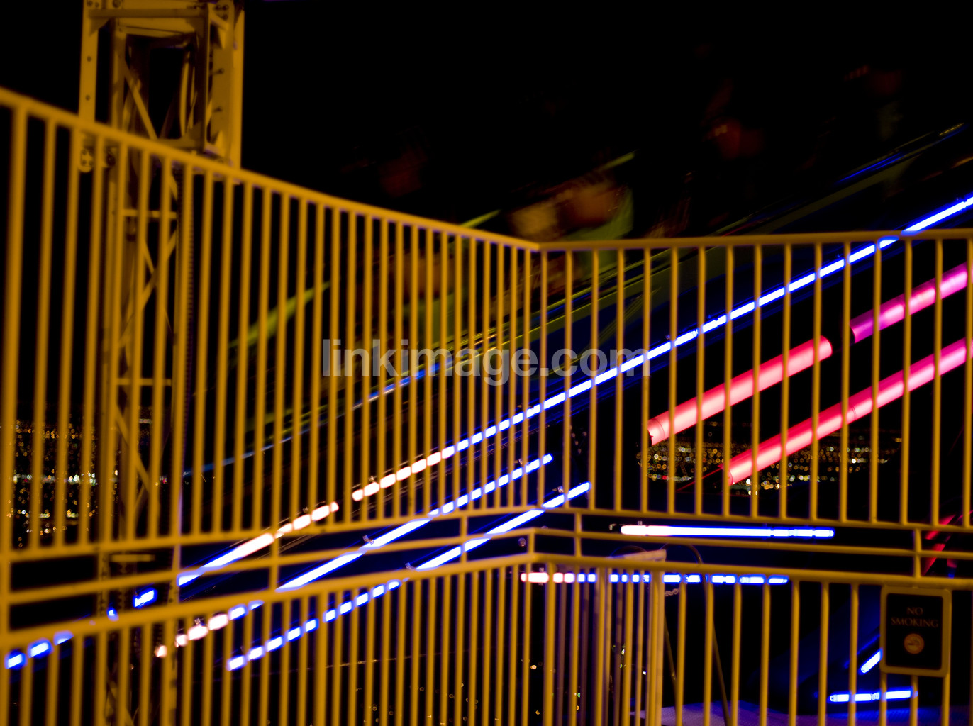 - neon lights, grid, fence, exterior, architecture
