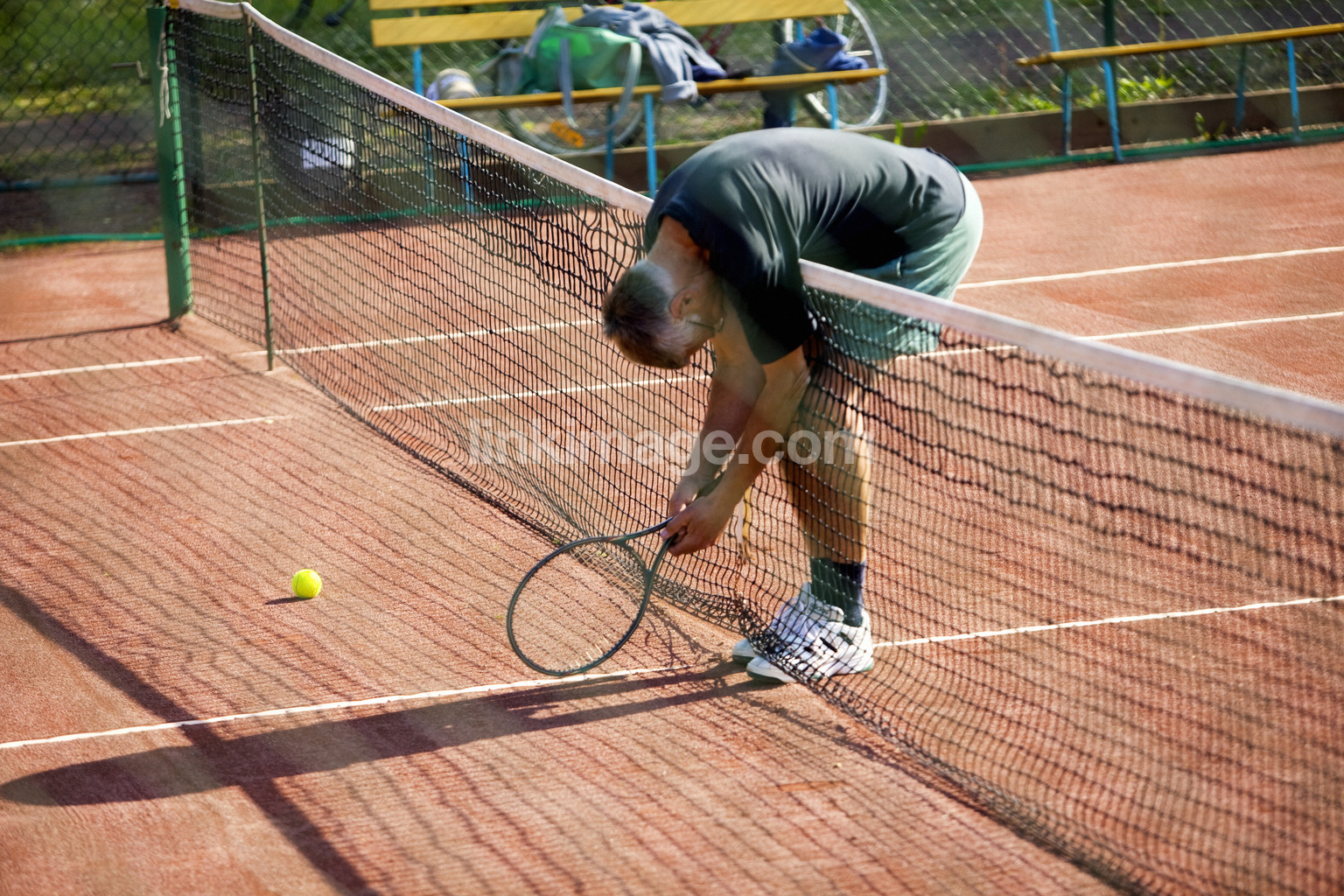 tennis, exercise, older, tired, ball, network, stop, male, summer, sports, barrier