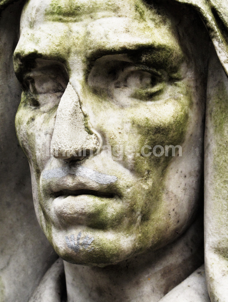 stone face, bust, moss, old, cooked, male, hood, historical, green, molds, mustache, graffiti, statue, sculpture, worn