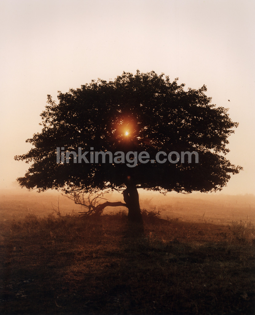 field, tree, sun, decline, fog, obscured, spot, backlight, strain, horizon, sky, bk494