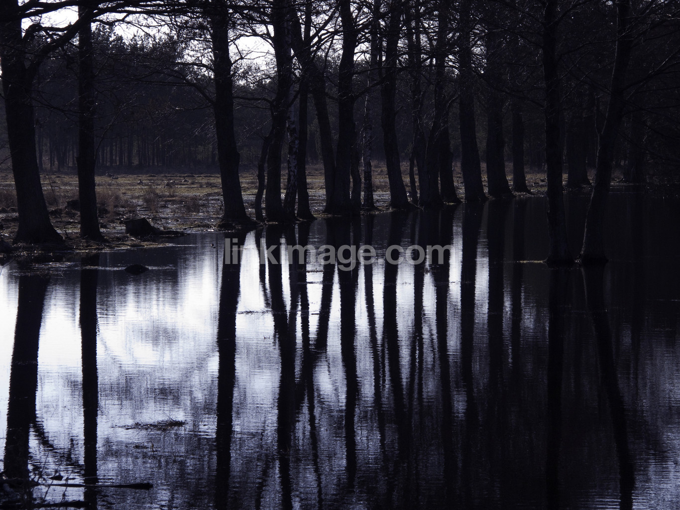 - mood, tree, tree trunks, reflection, water, water mirroring, dusk, evening, evening, fall
