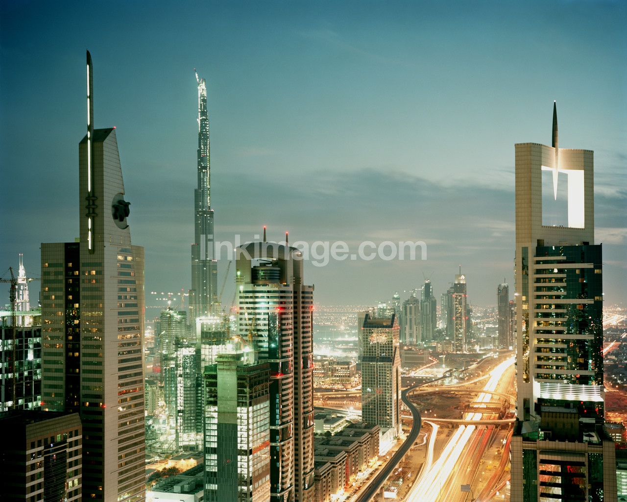 - skyscrapers, city, city, rise, evening, night, light, lighting, traffic, skyscraper, movement, road, street, sky, dusk, architecture, office, evening