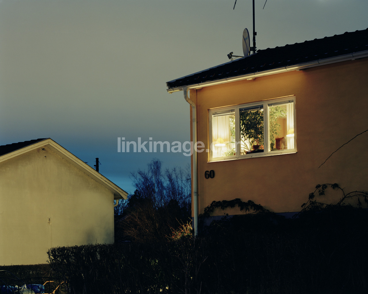 house, evening, antenna, bush, mysterious, night, housing, villa, light, energy, suburb