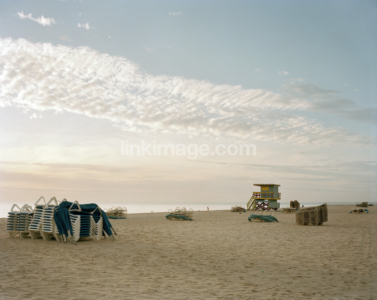 - shore, deckchair, sunbeds, fate, morning, beach house, sky, summer, dawn