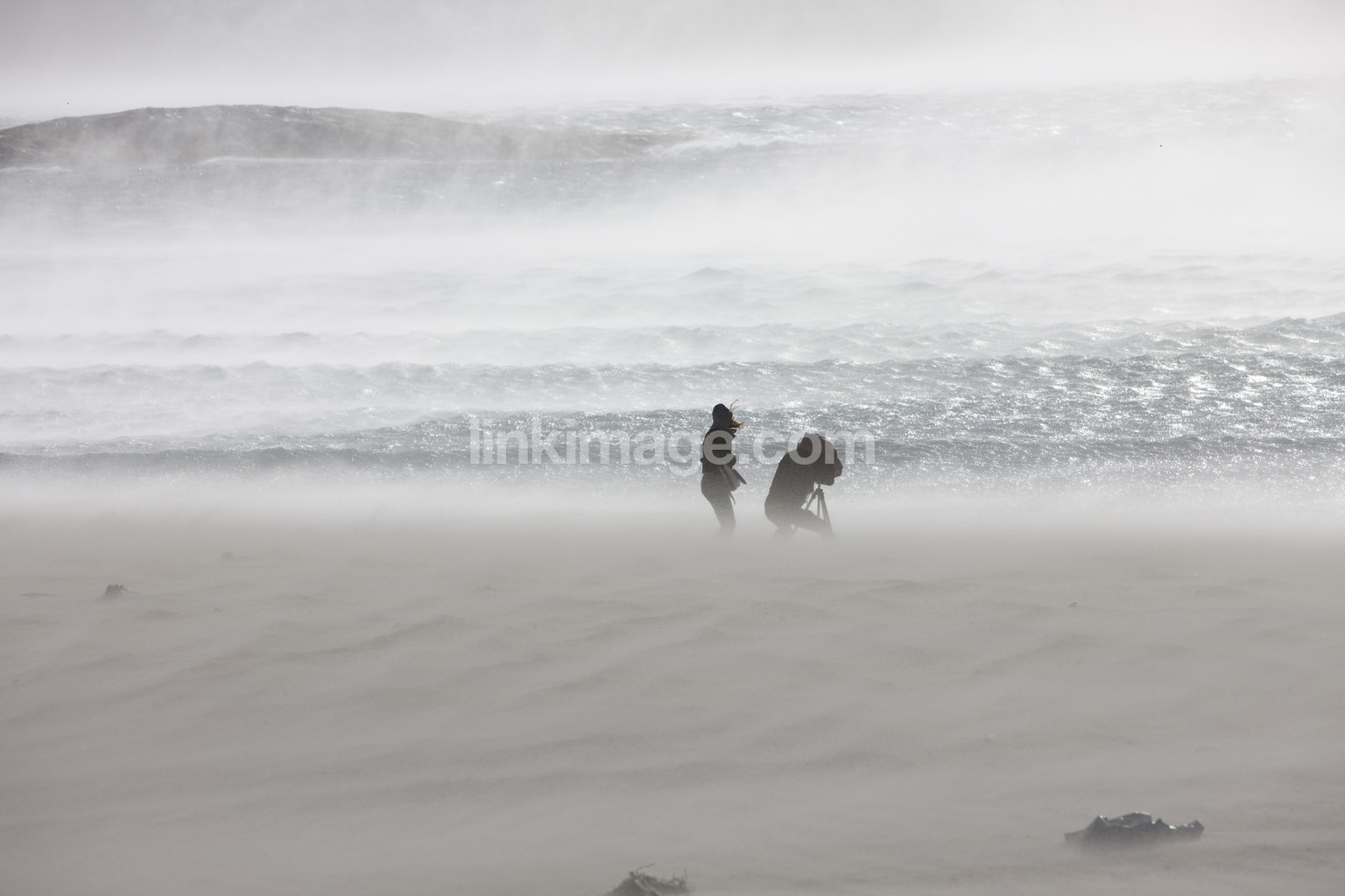 storm, sea, sand, shore, wind, wave, waves, force, figure, camera, photographer