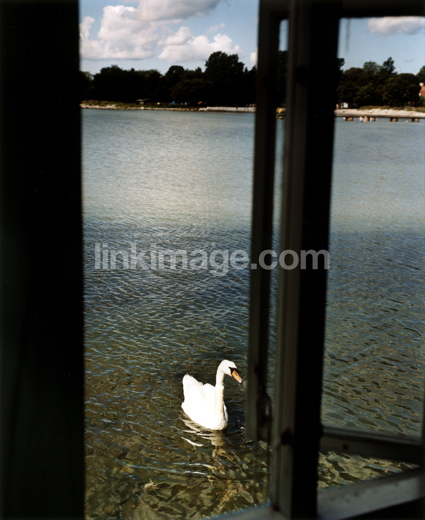 swan, bird, window, swimming, flowing, water, lake, sea, views, view, sky, cloud, bk546