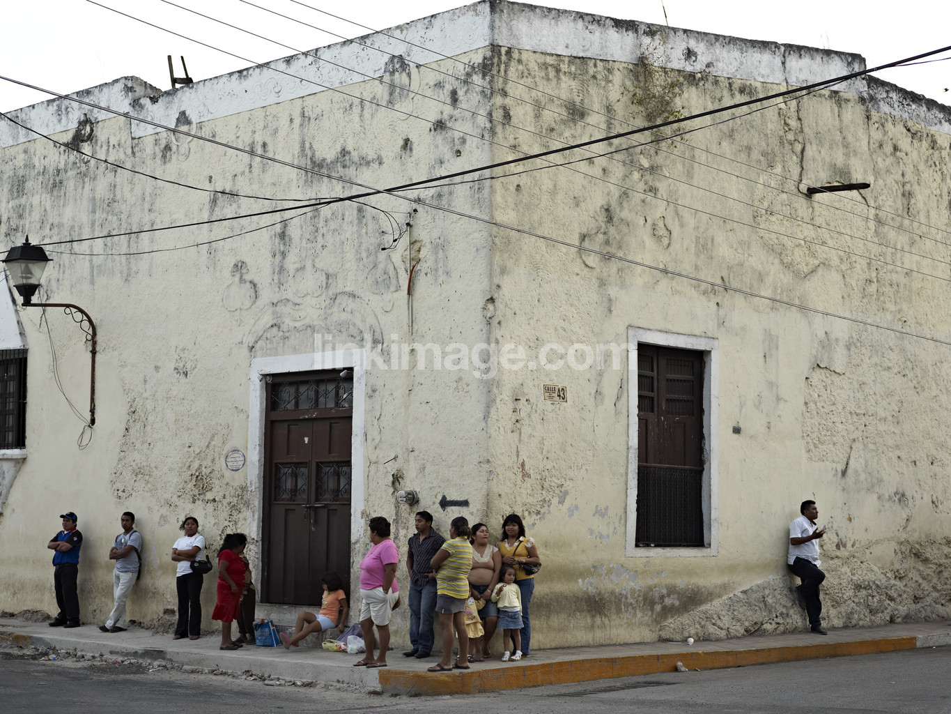 people, group, collection, house, building, corner, block, cables, lines, lamp, pavement