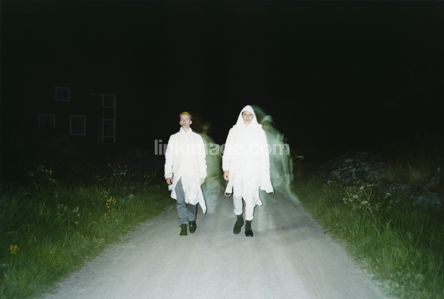 - evening, night, two, couple, guy, male, coat, double, pedestrian, road, gravel road, ghost, movement