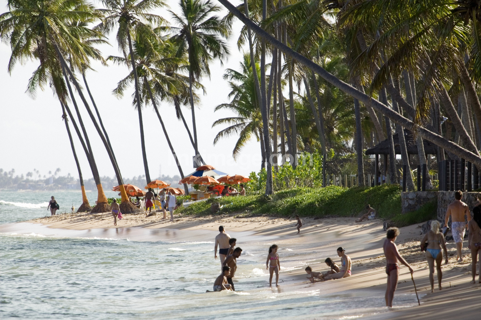 brazil, shore, serving, afternoon, tourism, sand, sea, water, palms, tree, people