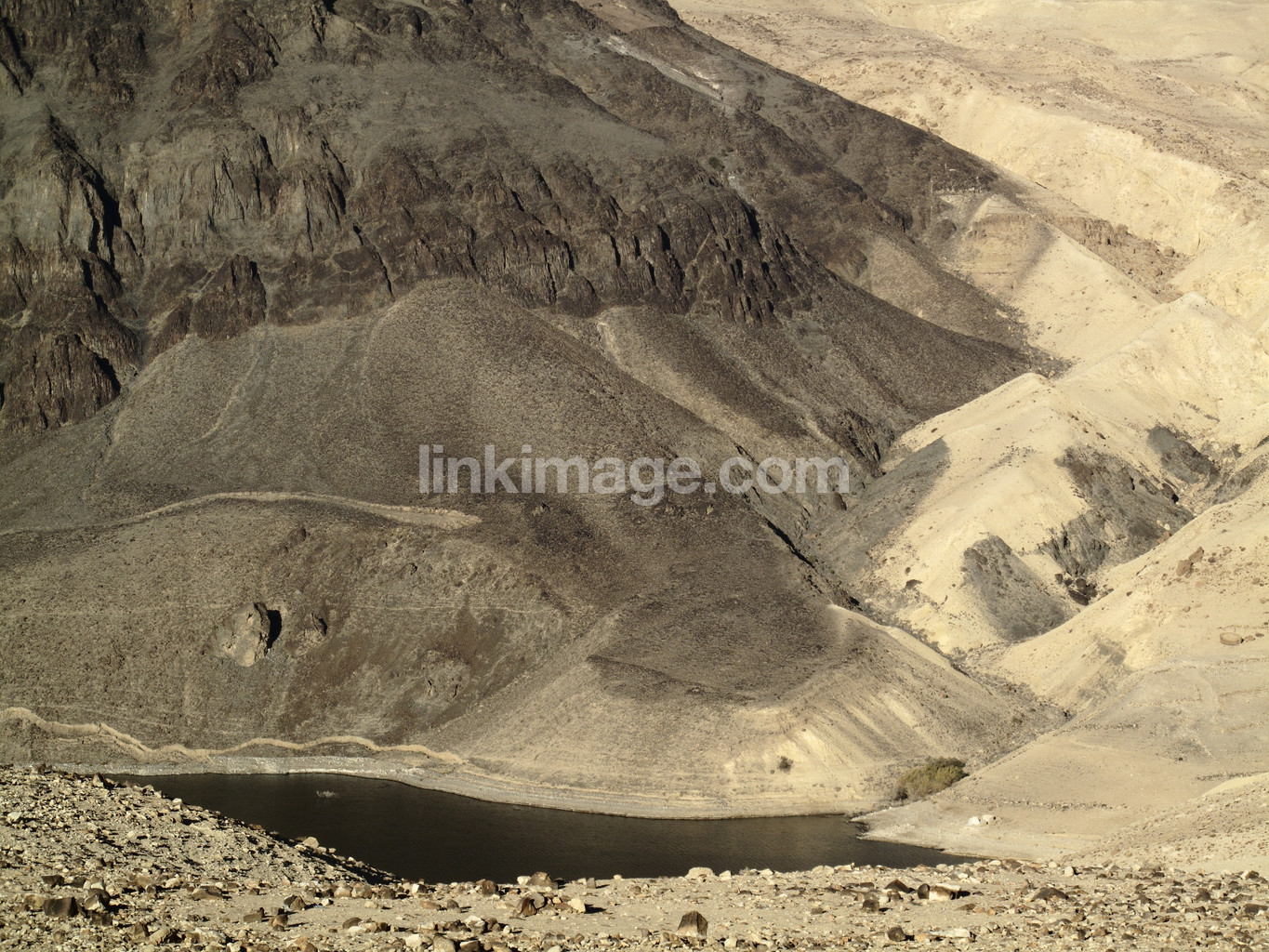 desert, water, black, yellow, dust, sand, fate, adventure, views, view, oasis, river, lake, slope, precipice
