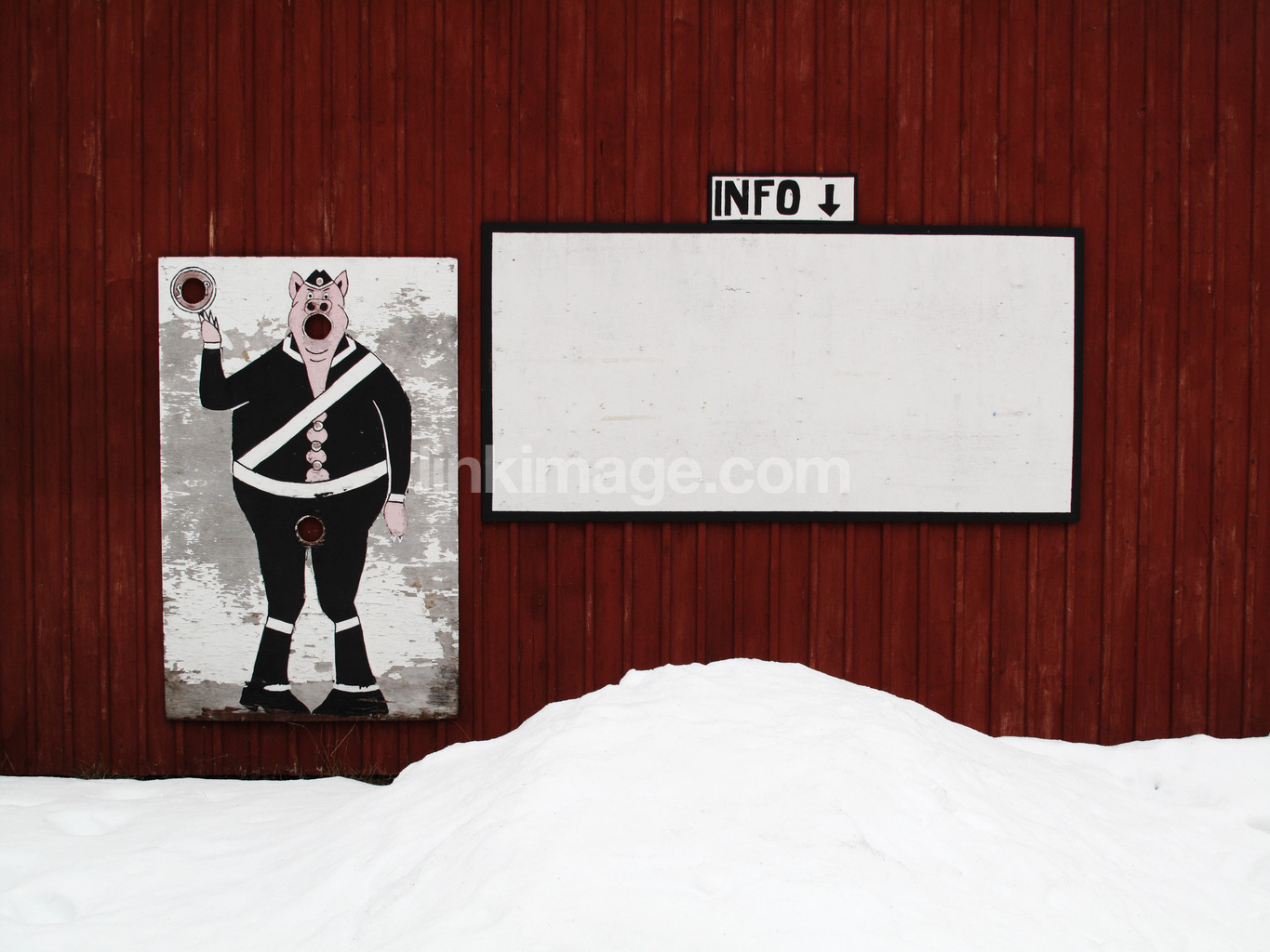 - cop, information, pork, humor, snow, winter, bulletin board, holes, red, wall