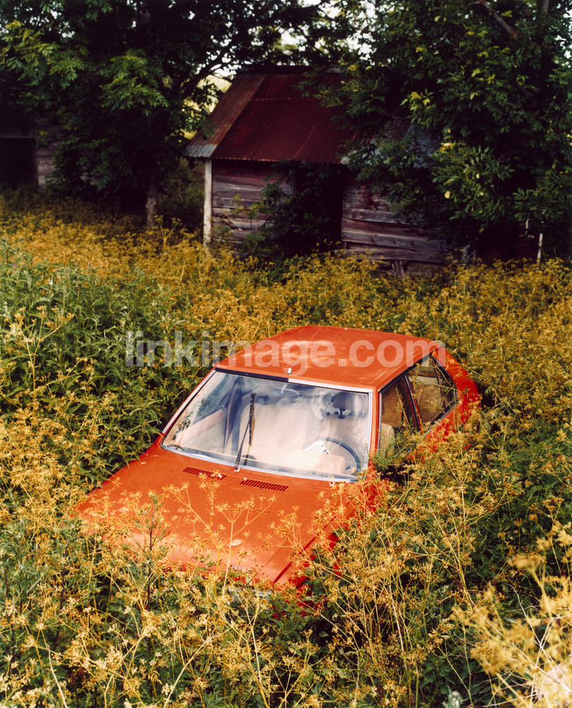back, yard, spot, house, summer, forest, tree, scrap, car, garden, overgrown, red, left, bk691