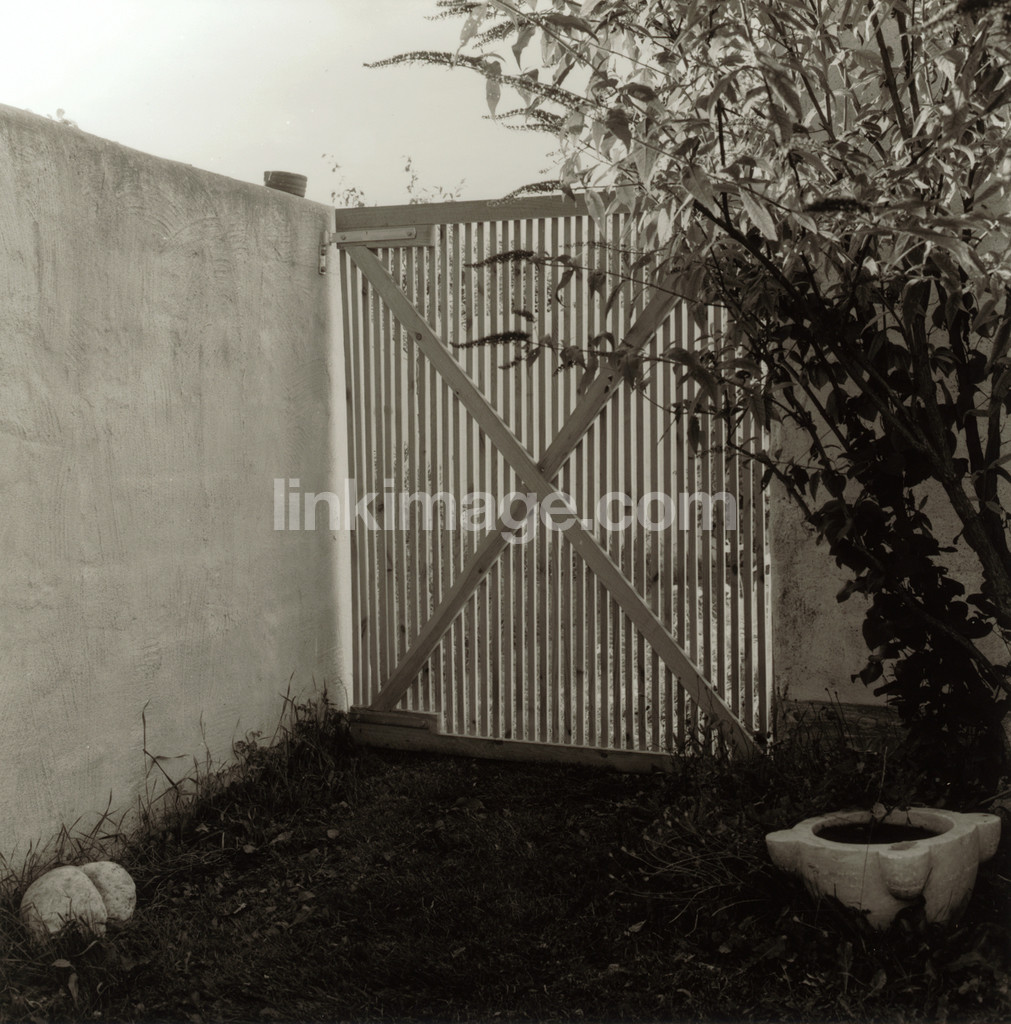 wall, port, garden, encircle, fence, limit, gate, plant, branches, leaf, pot, bk715