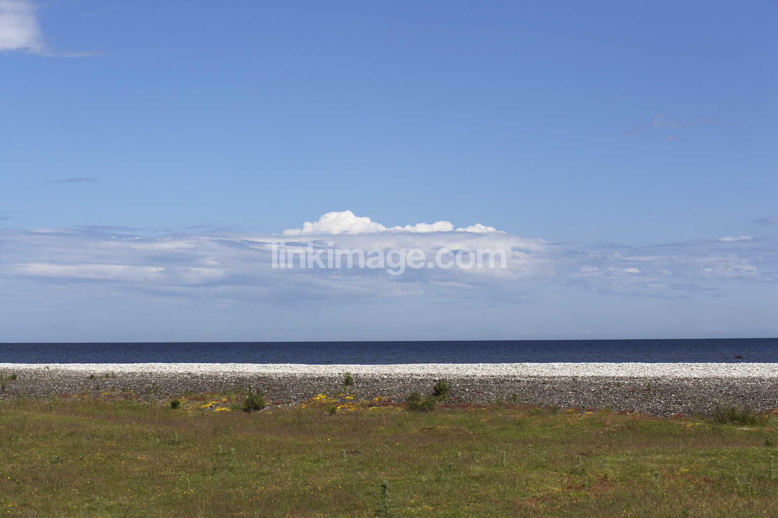 grass, cloud, sky, spot, peaceful, summer, shore, water, sea, horizon