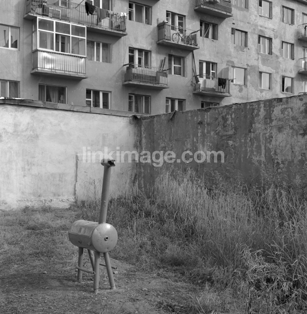 - play sculpture, balcony, wall, worn, poor, homes, housing, balconies, giraffe, toy, playground