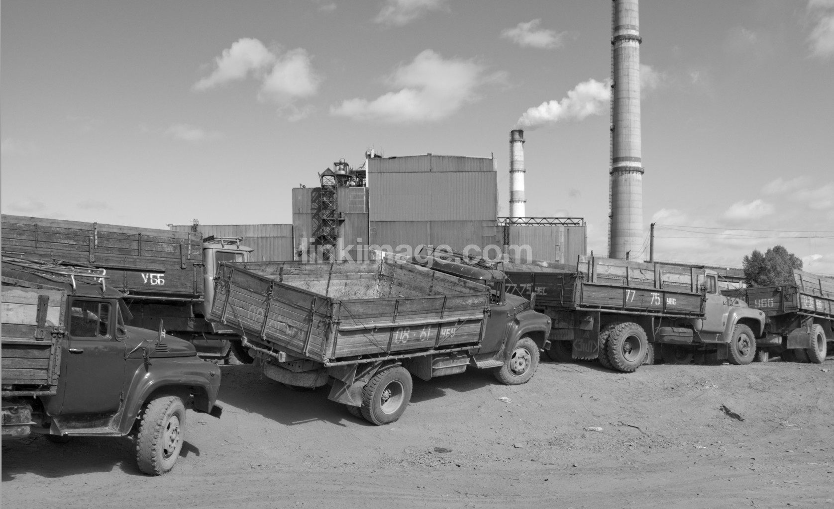 - flatbed truck, transport, truck, trucks, plant, tower, chimneys, parked, industrial