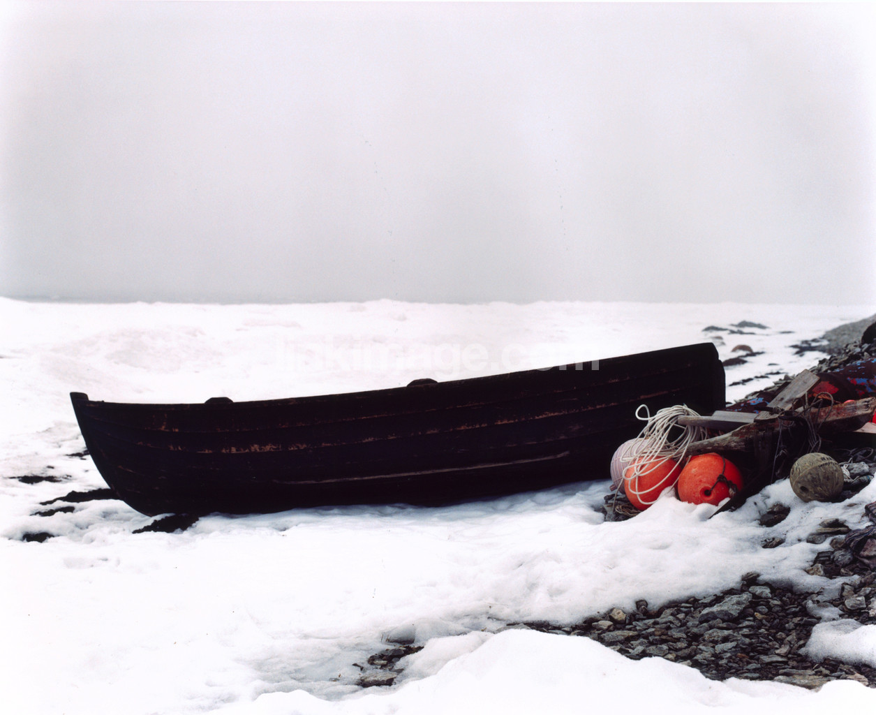 boat, shore, snow, ice, winter, cool, cold, horizon, sky, left, buoy, bk748