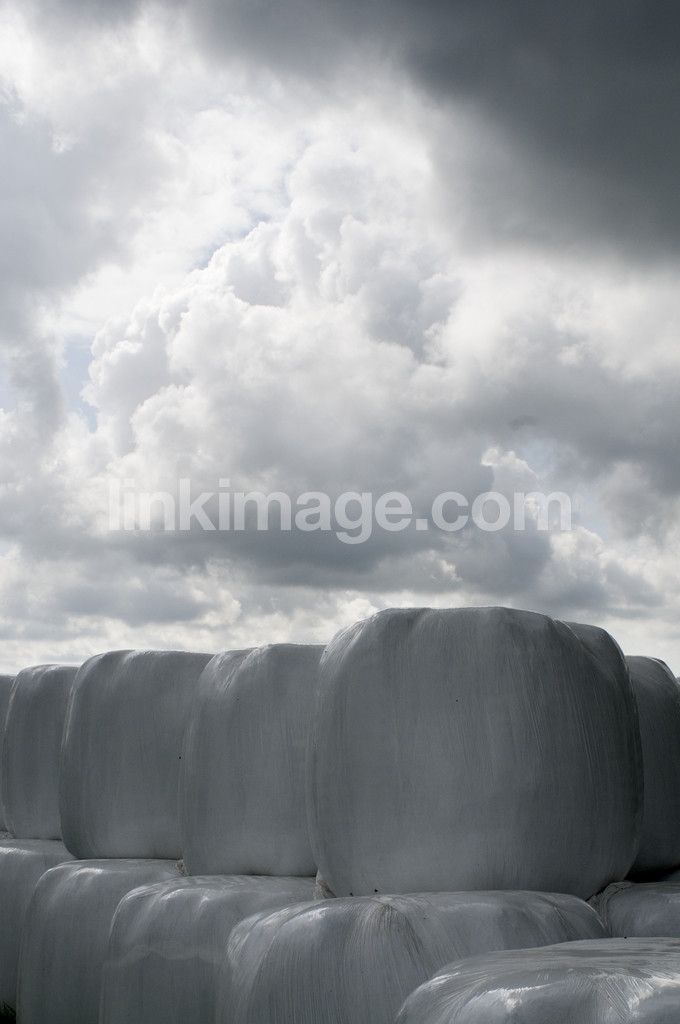 - feed, pack, plastic, agricultural, silage balls, sky, overcast, cloud