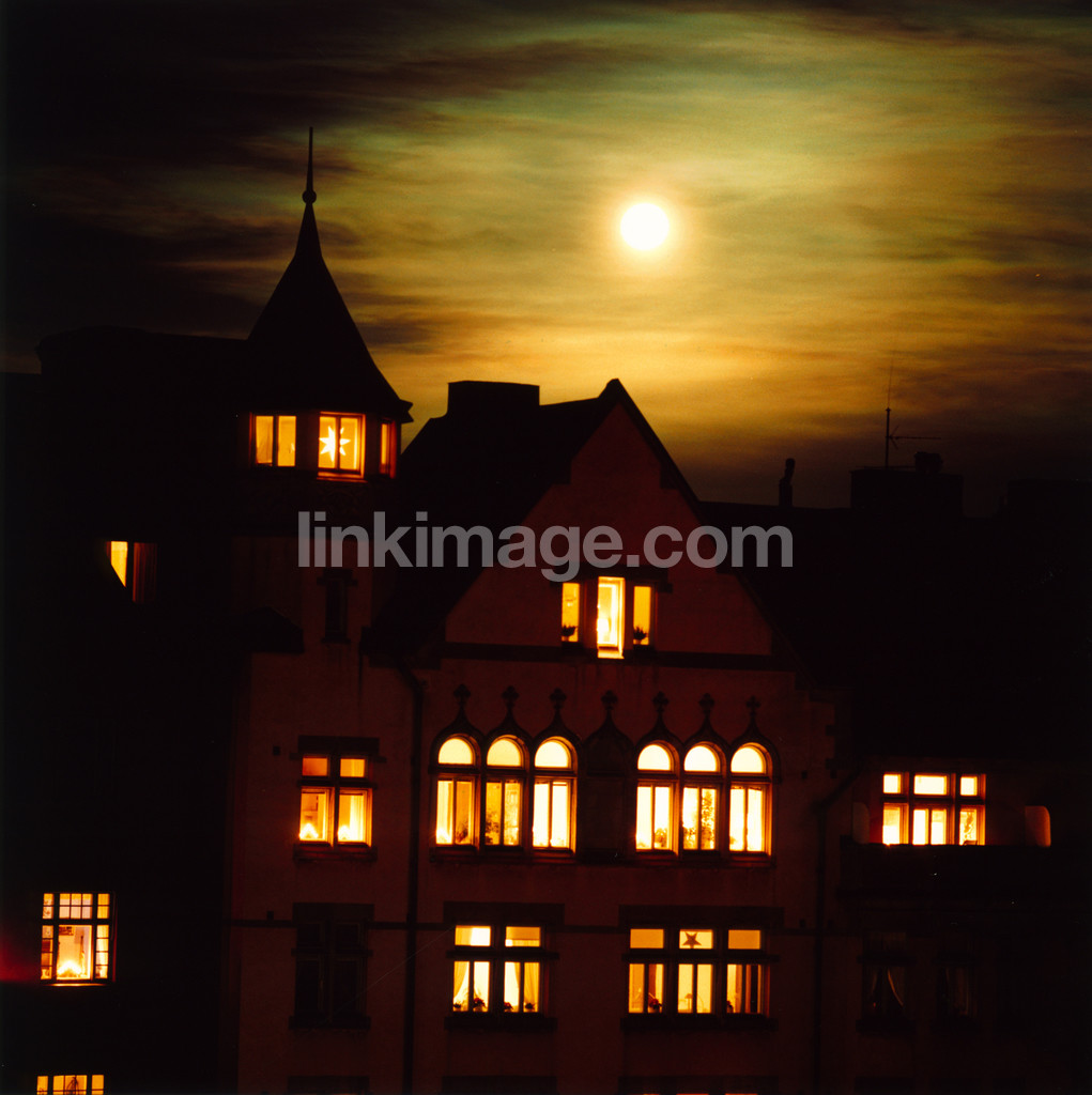house, night, window, light, full, moon, quietly, tranquility, security, dark, full moon, cloud, bk794