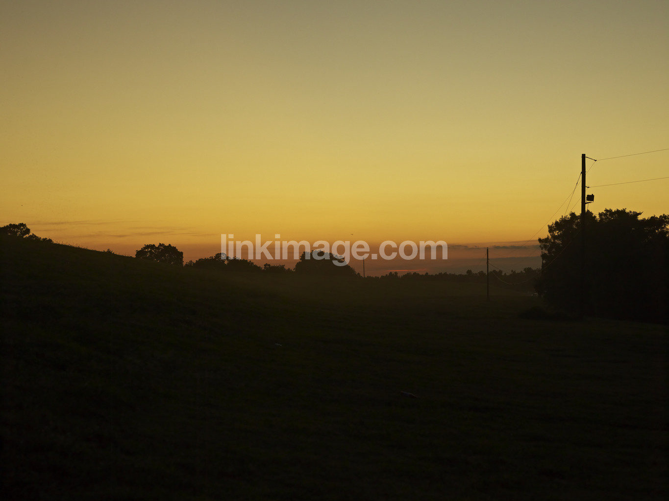 - sky, sunset, sunrise, dusk, dawn, tree crowns, tree tops, silhouette, electric cable