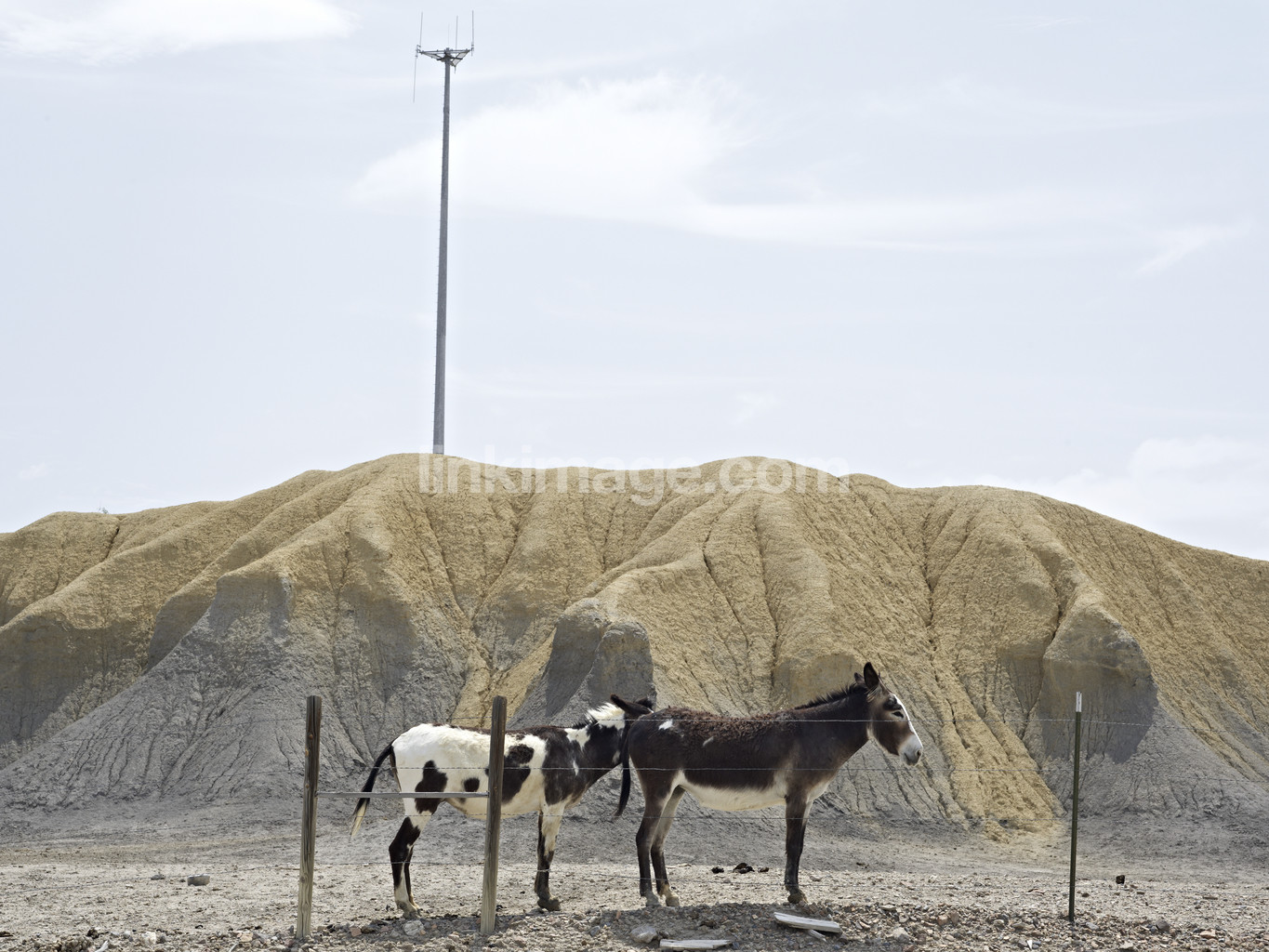 - donkey, rock, post, power pole, electric cable, nature, fence, animals, sand, pasture