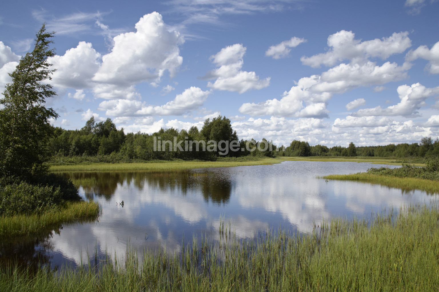 summer, lake, water, greens, reed, tree, sky, cloud, swedish, spot, forest, bath, fishing, surface