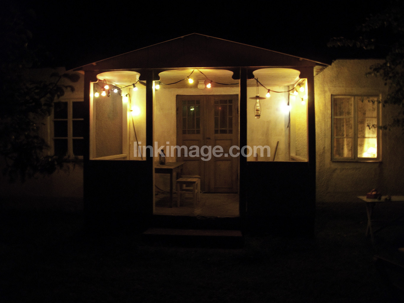country, country built, croft, house, porch, party, fall, light, door, window, evening, dark, silent, fate, lights, cozy