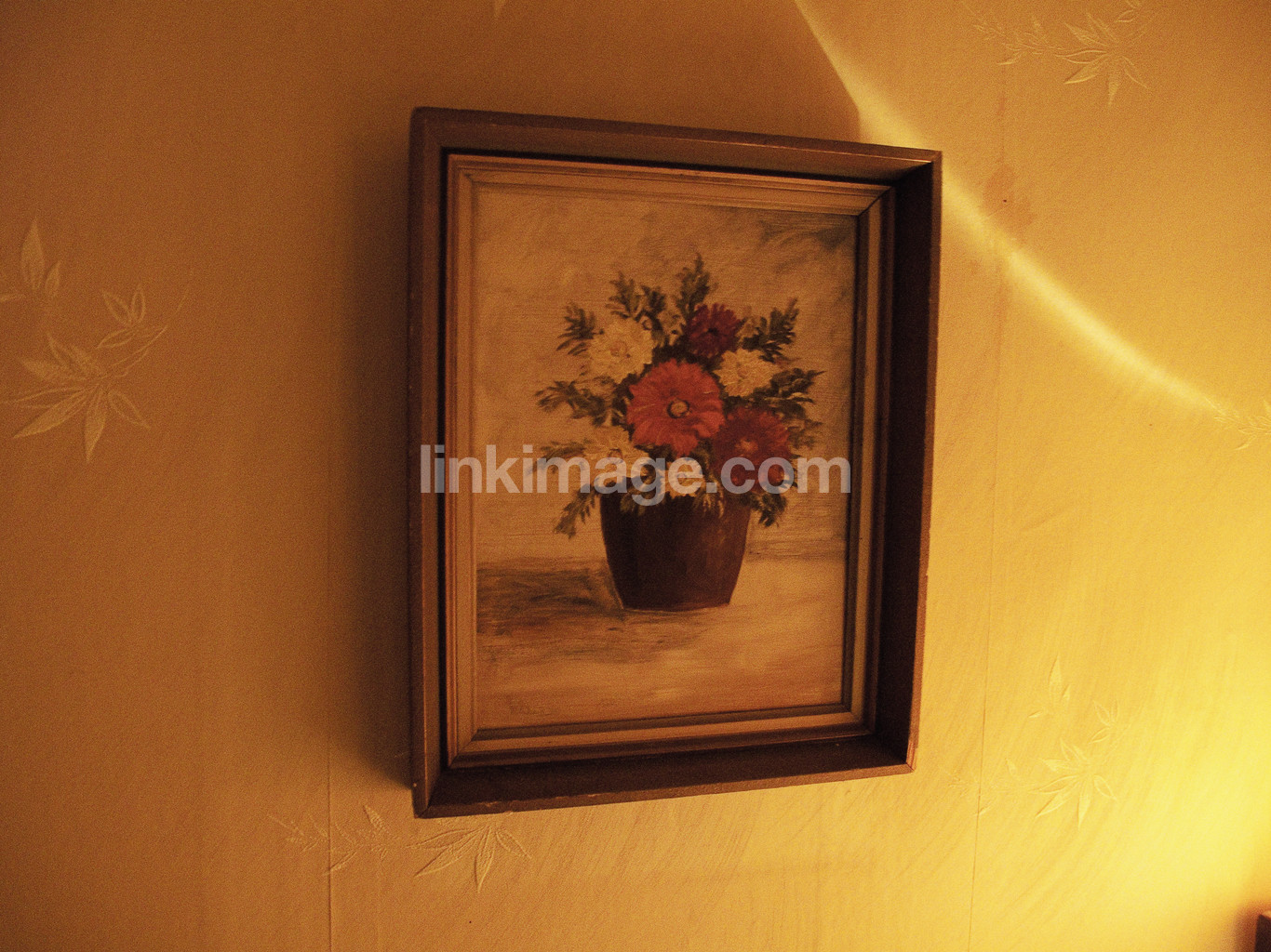 - plate, interior, motif, flowers, still life, wallpaper, pattern, evening, country, light, photo frame