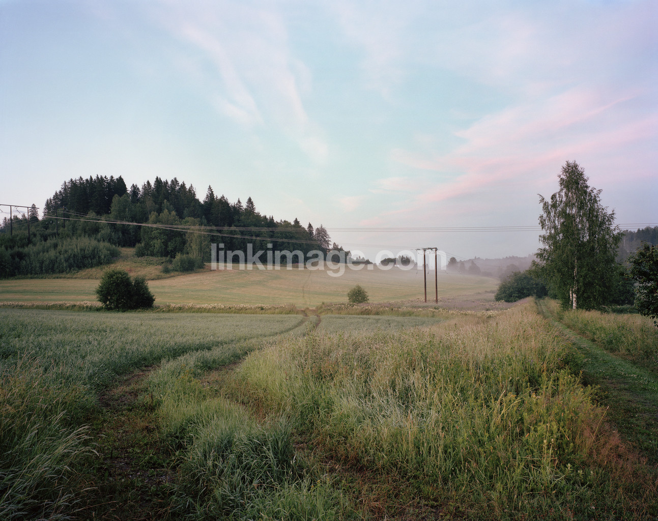 - morning, grass, go, tree, greens, sky, cropland, telephone line, power line, fate, fog, evening, sunset, still, blank, wheat, oats, bushes, spot, forest, summer, road, crossroads, filter, freedom