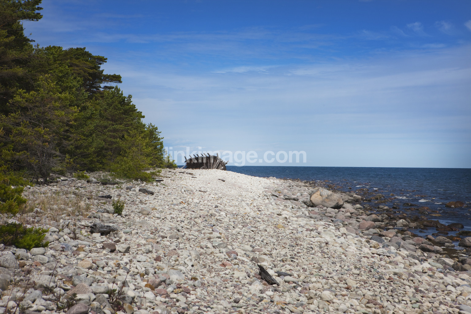 boat, shore, stones, water, sea, lake, sky, summer, weather, season, abandoned