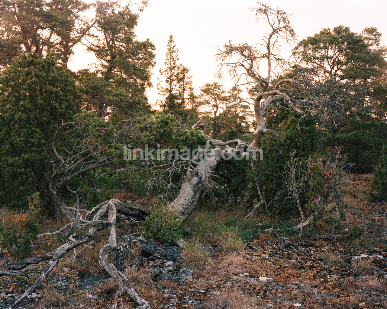 - spot, rock, knapweed, bush, shrubbery, nature, spring, evening, sunset, straggly, still, fate, tree, died, branches, an, pine, forest, stones