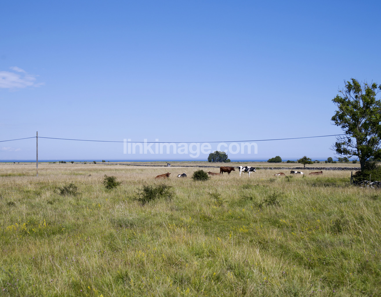 - summer, meadow, cows, country, sky, field, go, pasture, electric cable, power pole, tree, grass