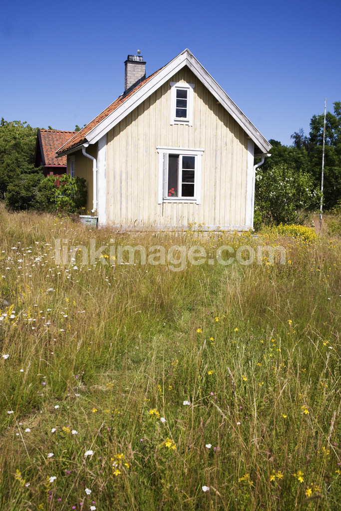 cottage, meadow, path, summer, window, flower, open, croft, house, villa, holiday