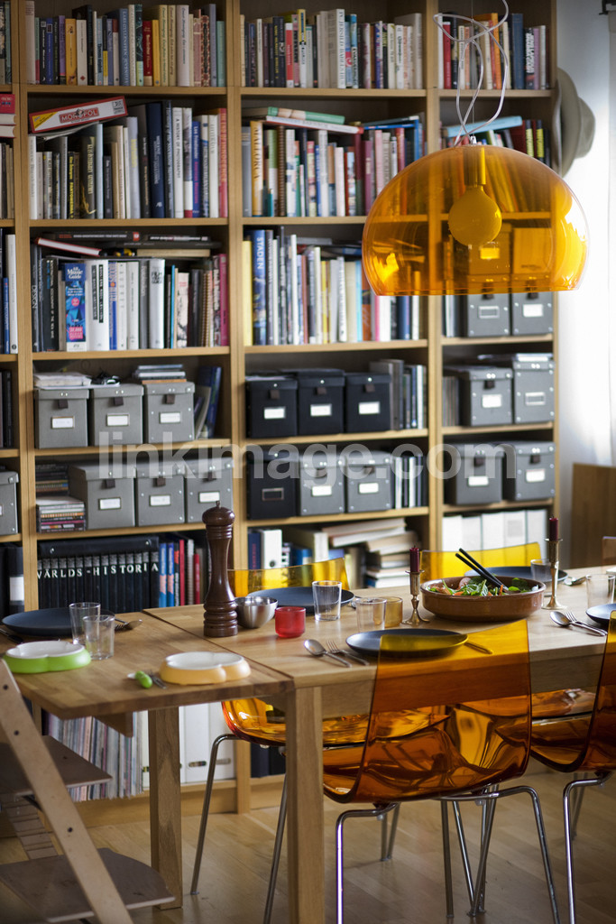 living, interior, bookshelf, direction, lunch, orange, chairs, table, salad, children, meal, food, family, dining table, ducat