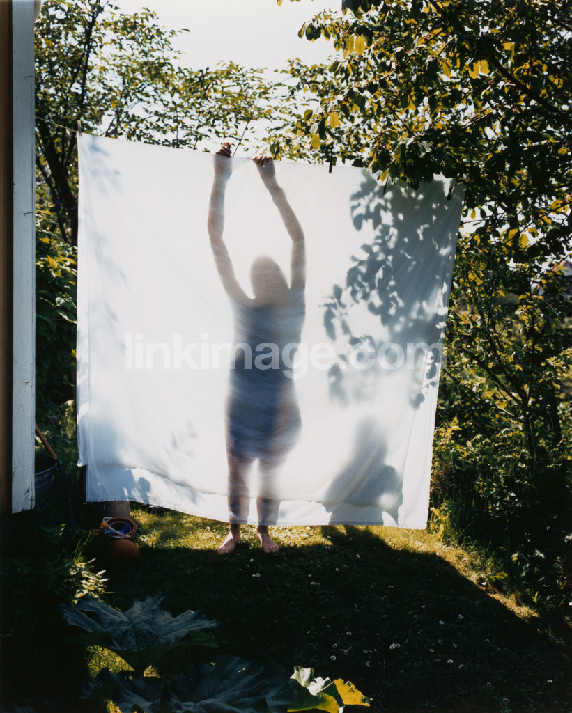 summer, female, wash, garden, grove, tree, backlight, silhouette, shadows, hanging, up, bk778