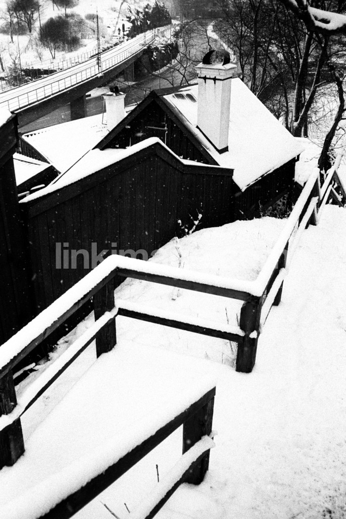 house, villa, home, housing, wall, bridge, winter, snow, fence, stack, staircase