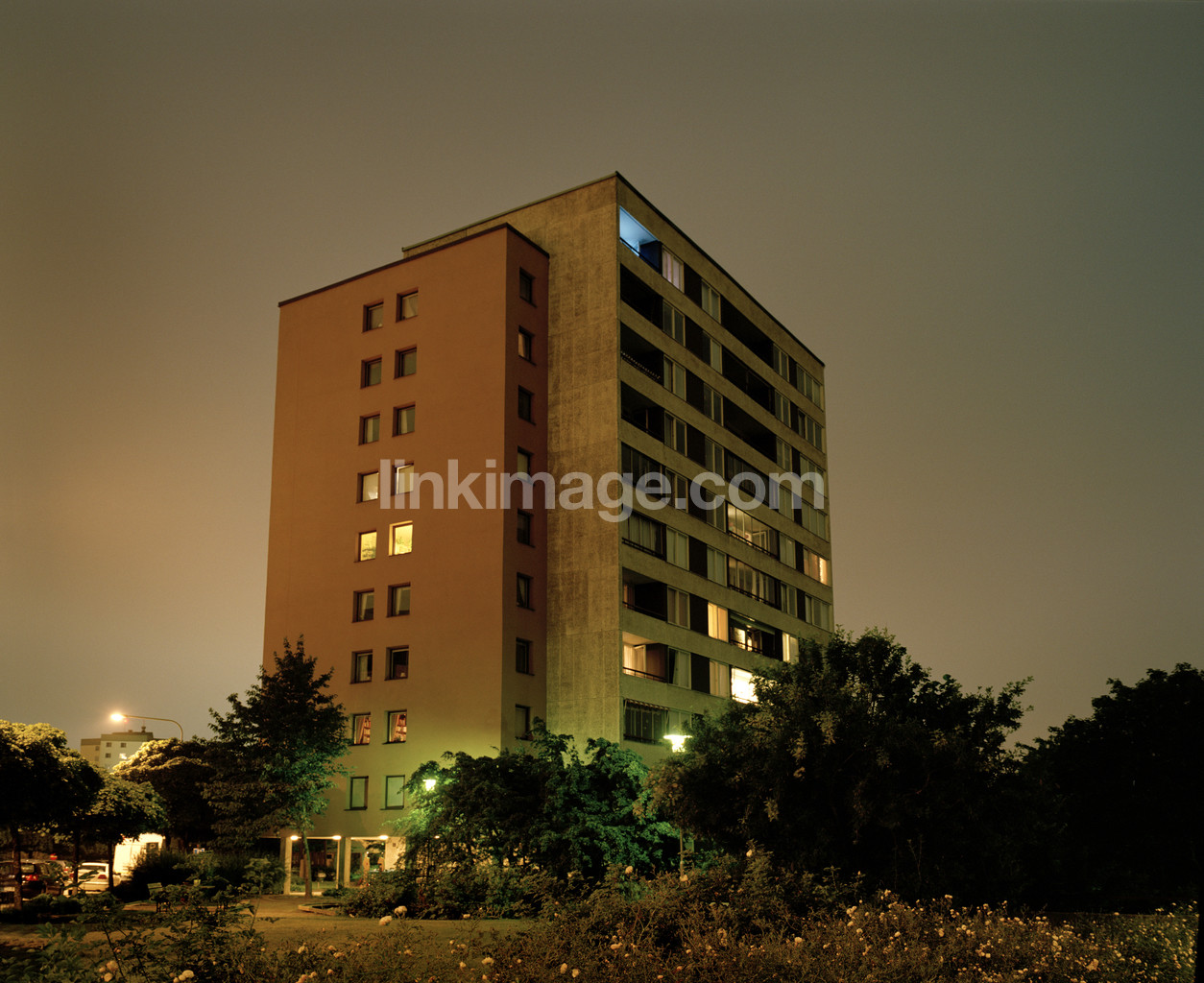 - house, apartment building, evening, suburb, solna, tv, home, condominium, concrete, rise, yellow, hot, night, housing, alone, light, dark, energy, skymnig