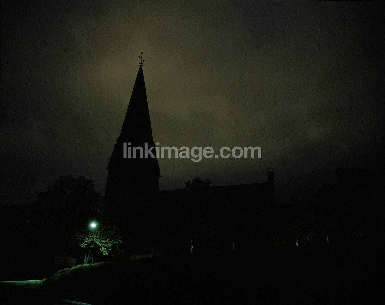 church, night, horror, dark, threat, black, tower, silhouette, alone, religion, cross, lamp
