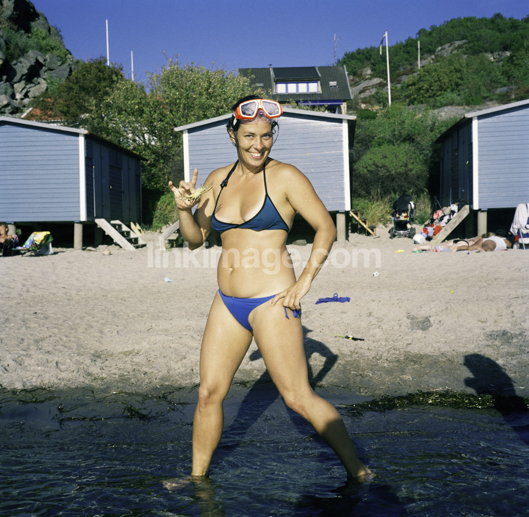 - female, portrait, swim, bath, bikini, water, sea, shore, sand, happy, summer, holiday, bod, cut, rock, shell