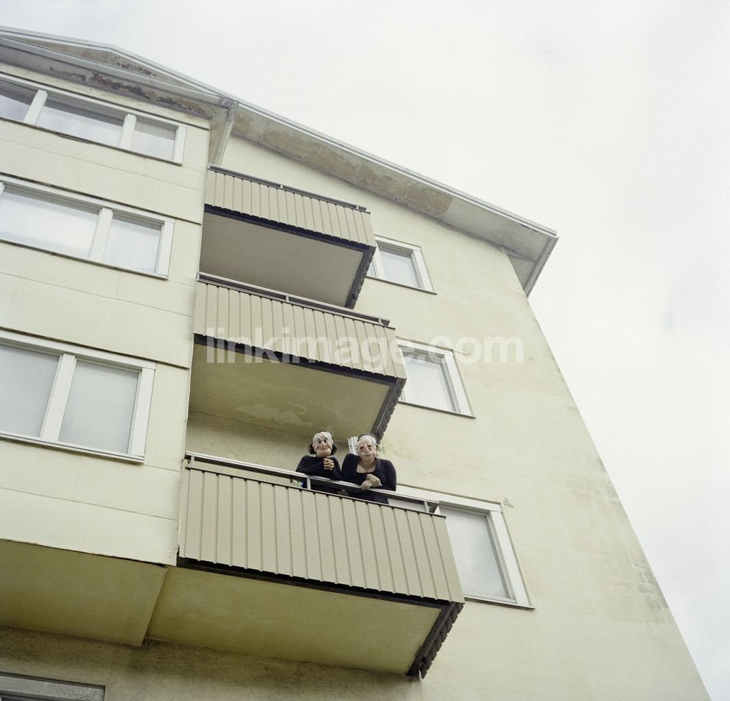 house, rise, couple, male, female, balcony, apartment building, architecture, home, housing, summer, form, humor