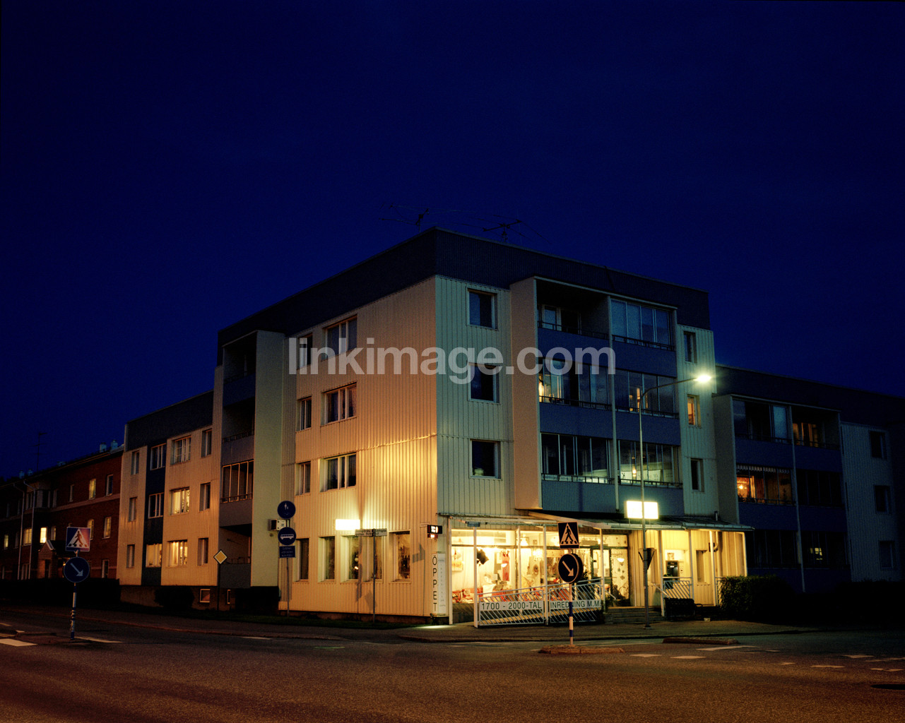- junction, house, apartment building, plate, business, housing, night, evening, small town, suburb, balcony, home, quiet, fate, silent, enköping