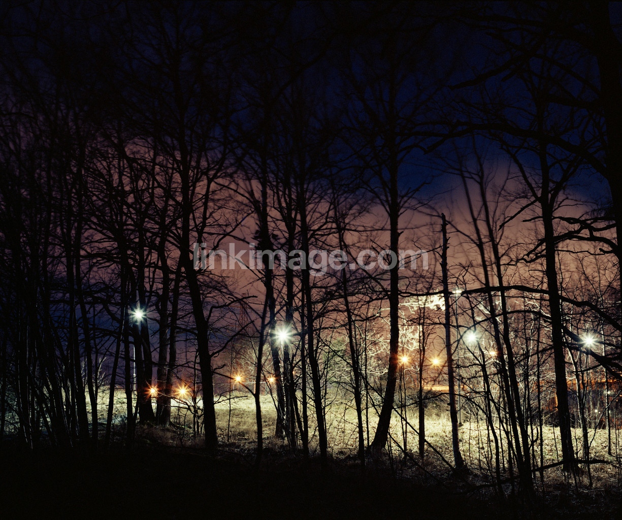 - night, fall, winter, walkway, bicycle path, strains, tree, streetlights, cold, black, city, nature, suburb, hide, hazard, fate, blank, lighting