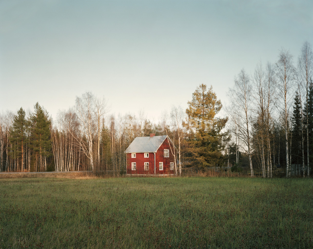 spot, meadow, go, house, red, swedish, fall, tree, sky, villa, summerhouse