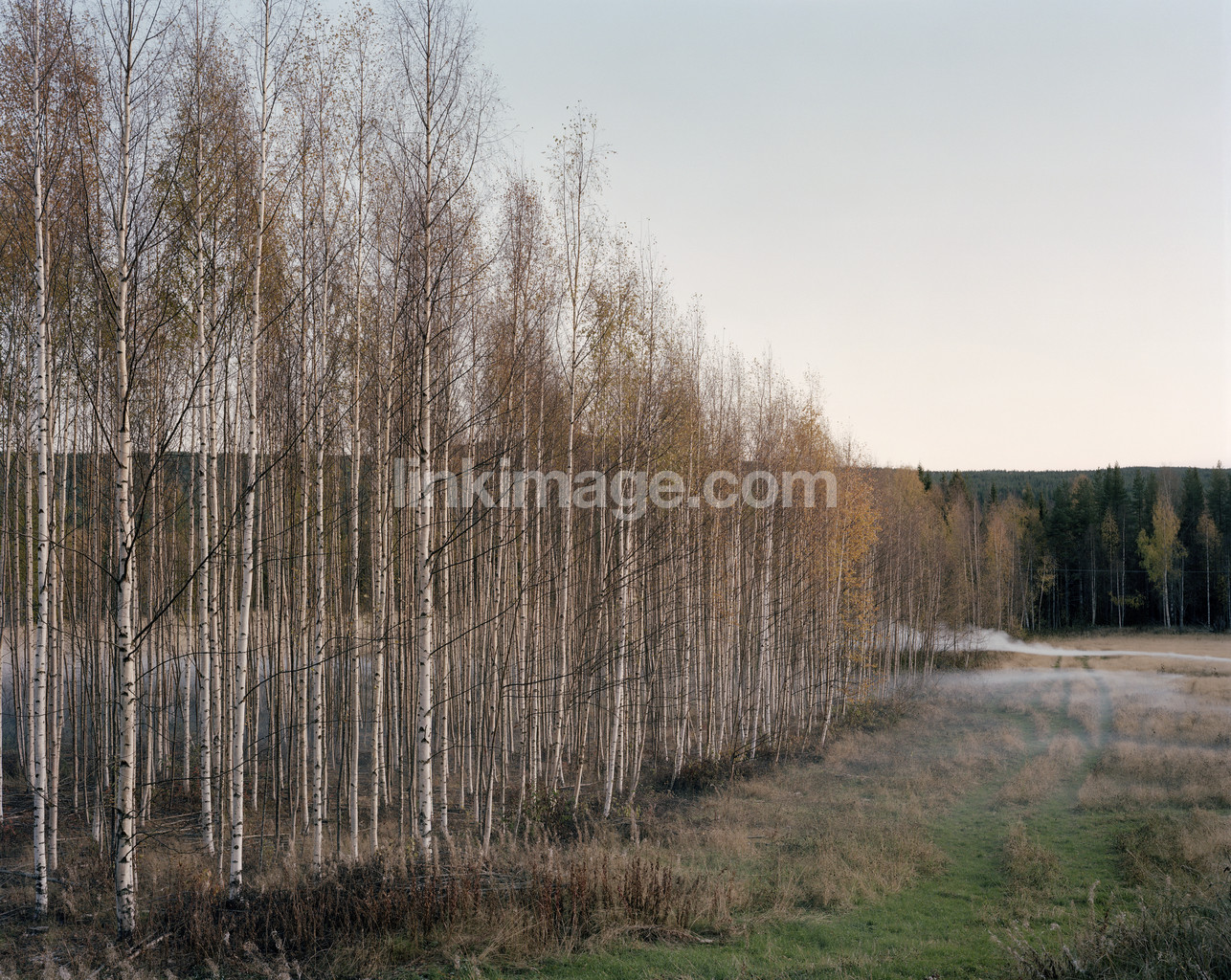 spot, birch, tree, go, rut, fall, nature, fog, haze, forest, meadow