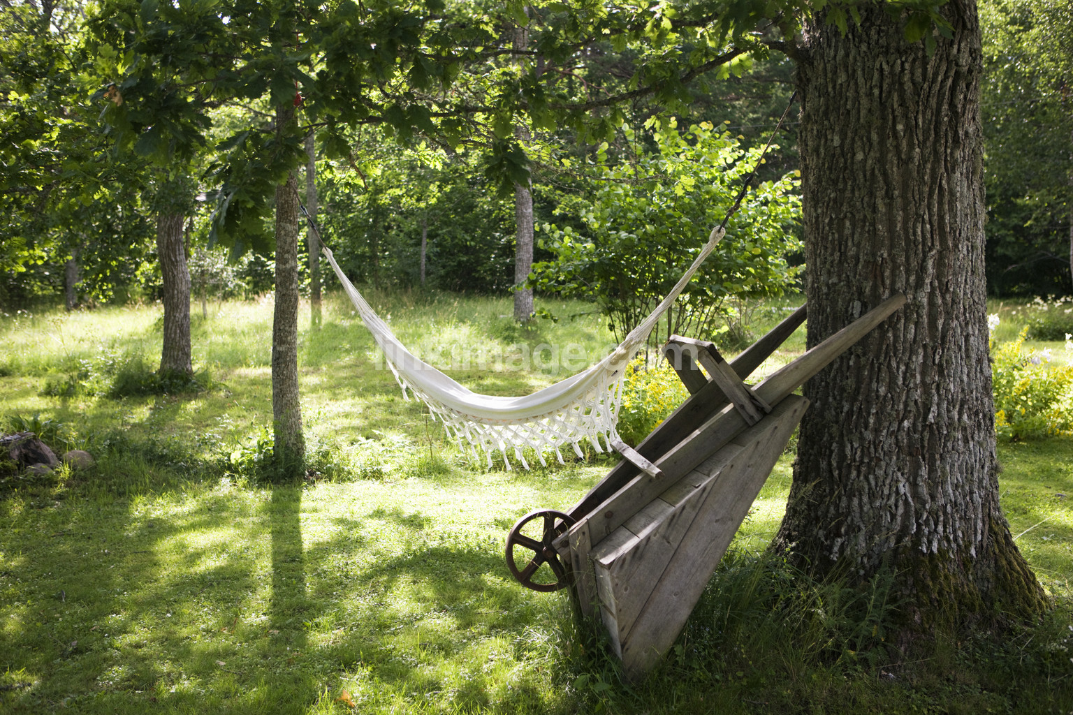 - summer, garden, meadow, hammock, wheelbarrow, greens, summerhouse, glade, grass, lawn, park, rest, enjoyment